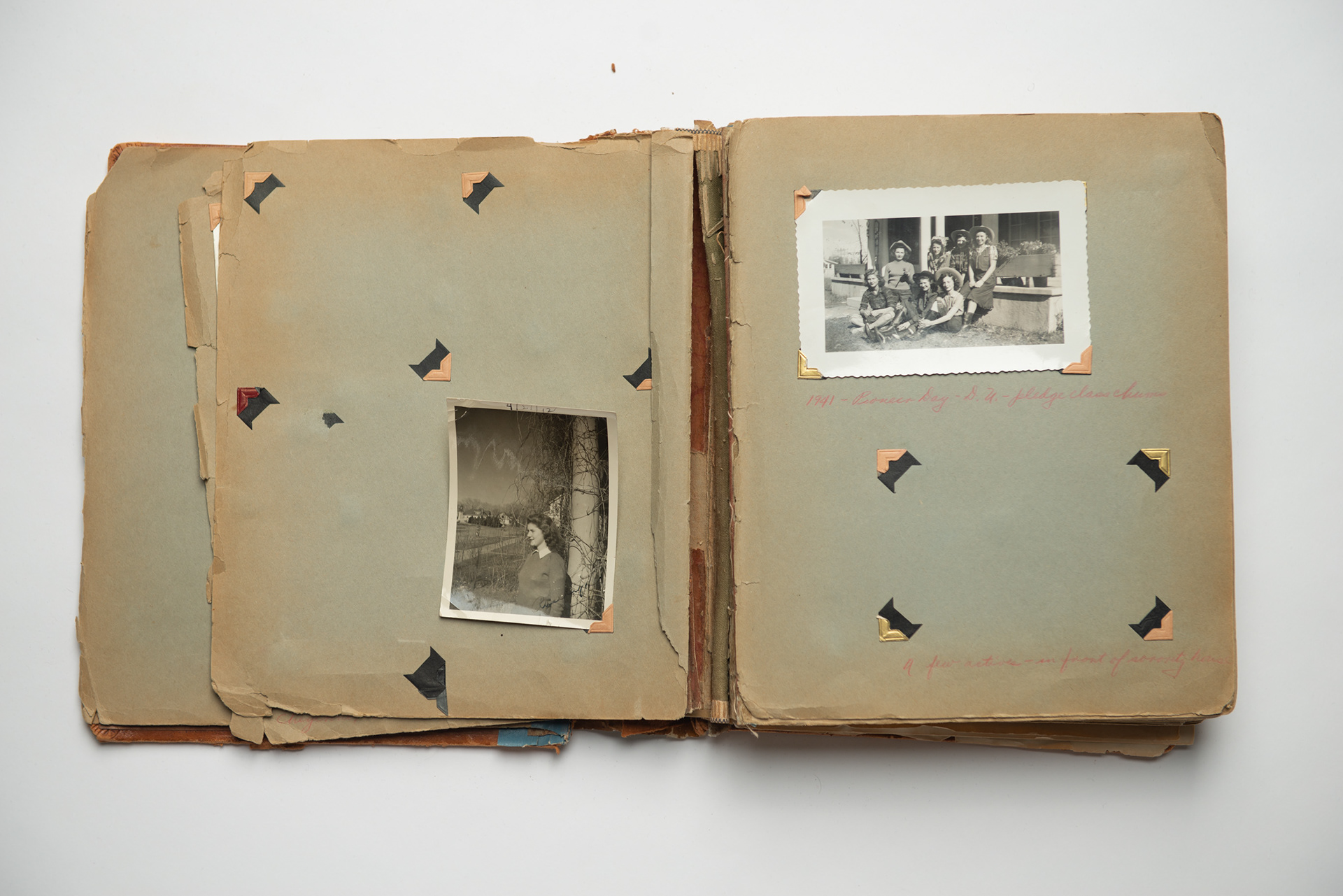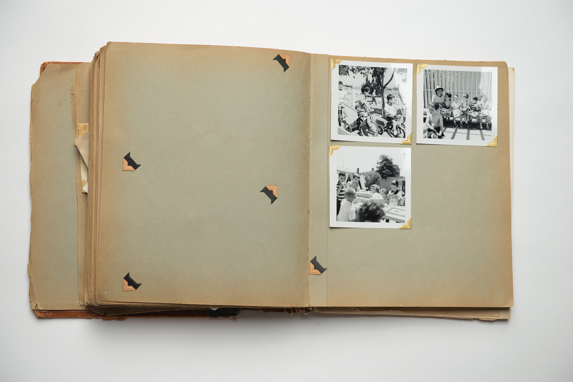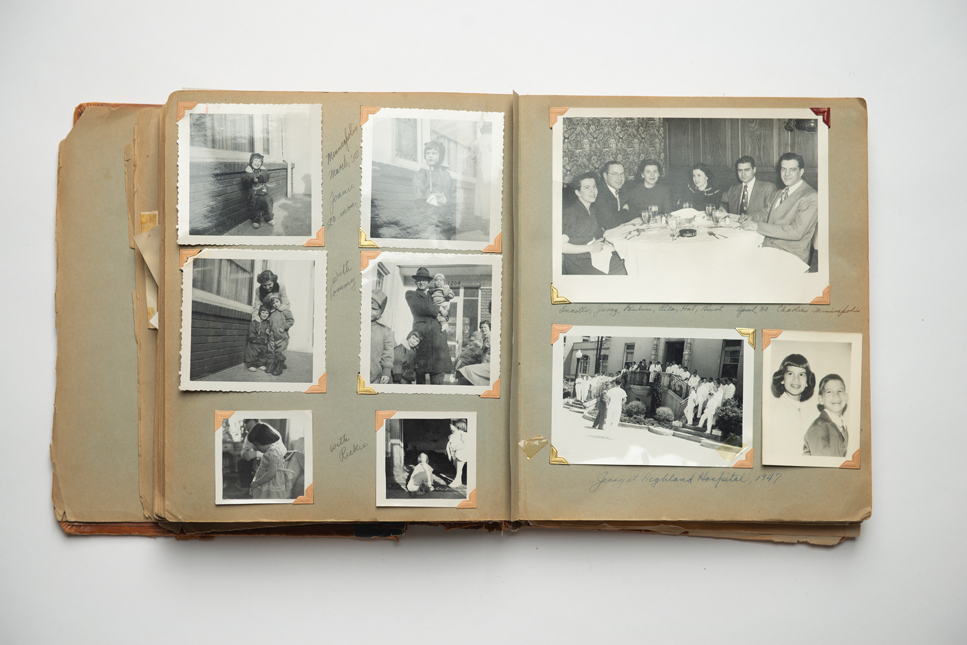 My work, both historical and contemporary, are made to form a sense of self that points to my American Jewish origins and contemporary experience of Jewish death, one that for the first time (for me) is not the same death I learned in hebrew studies. Death that I felt was used to point toward an Zionist Ideal. Past In Present is but one of an endless collection of Jewish experiences that are not assimilated in the American historical canon of what and who a Jew is. The photographs speak words of Jewish death and grieving, the conflation of historical and personal memory, and other forms of Jewishness not found in our history textbooks. Past in Present is comprised of 72 photos capturing my grandmother’s photo album as she curated it from the 1930s to the 1960s. The images feature Jewish experiences during the 30s and 40s in America that at one point, I thought to be impossible. The filmic aesthetic and captioned dates of my grandmother’s photos implicitly call to the images of the Holocaust, and the stark and disturbing contrast between Jewish death and Jewish life come to the surface. The missing images from the album, marked by the empty mounting corners and void captions, speak to the importance of missing details in the stories we inherent.
