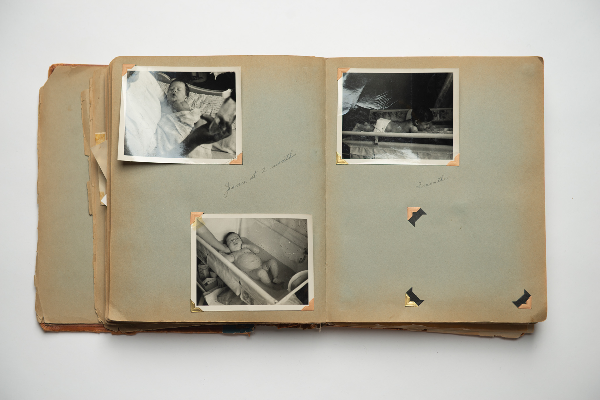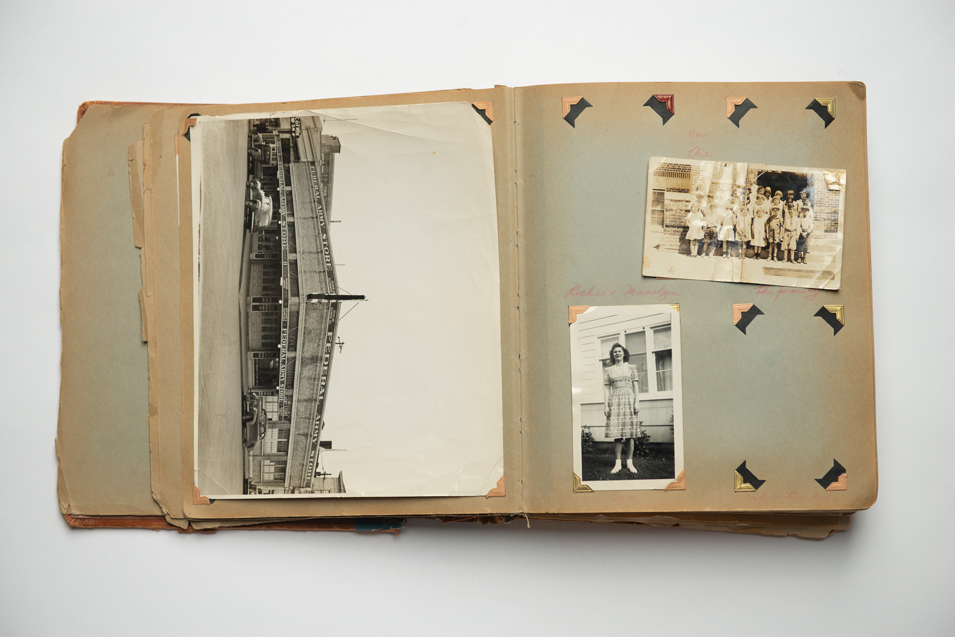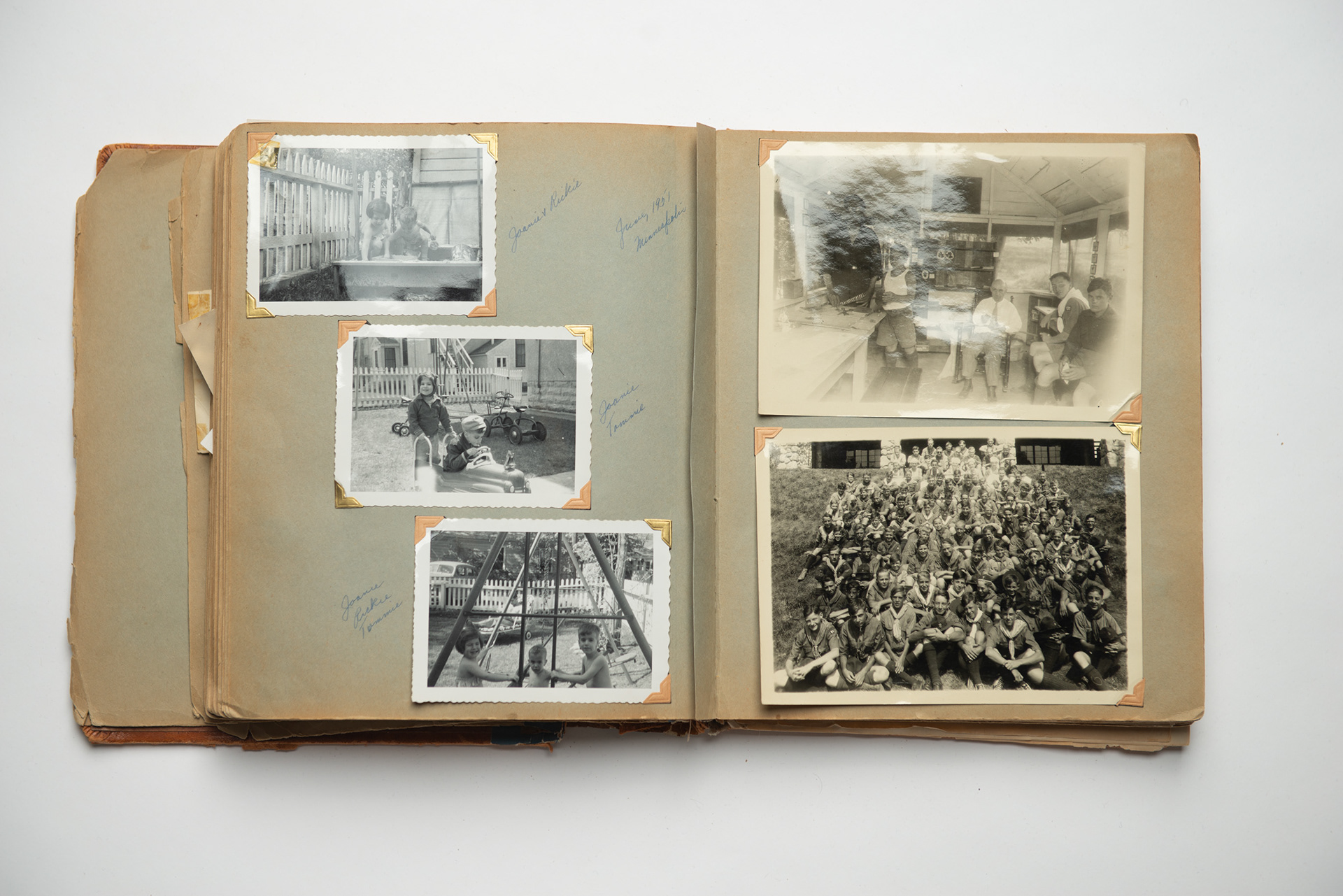 My work, both historical and contemporary, are made to form a sense of self that points to my American Jewish origins and contemporary experience of Jewish death, one that for the first time (for me) is not the same death I learned in hebrew studies. Death that I felt was used to point toward an Zionist Ideal. Past In Present is but one of an endless collection of Jewish experiences that are not assimilated in the American historical canon of what and who a Jew is. The photographs speak words of Jewish death and grieving, the conflation of historical and personal memory, and other forms of Jewishness not found in our history textbooks. Past in Present is comprised of 72 photos capturing my grandmother’s photo album as she curated it from the 1930s to the 1960s. The images feature Jewish experiences during the 30s and 40s in America that at one point, I thought to be impossible. The filmic aesthetic and captioned dates of my grandmother’s photos implicitly call to the images of the Holocaust, and the stark and disturbing contrast between Jewish death and Jewish life come to the surface. The missing images from the album, marked by the empty mounting corners and void captions, speak to the importance of missing details in the stories we inherent.
